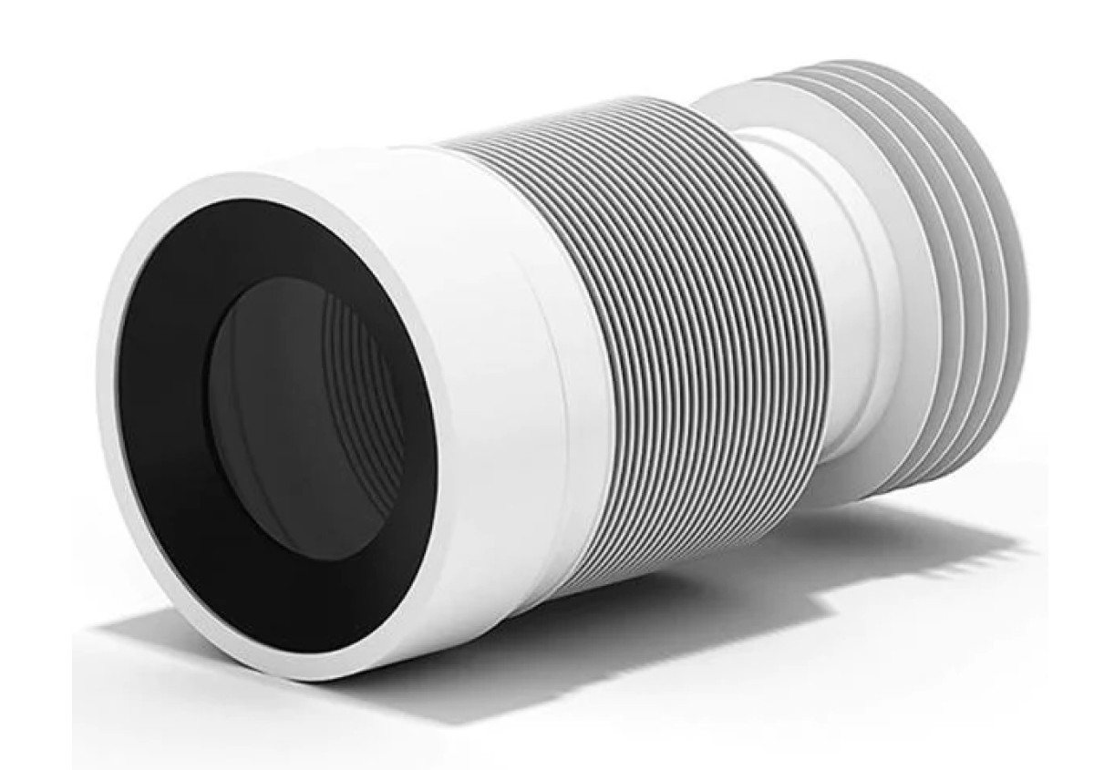 Гофрированная труба (гофра) К828EU предназначена для подключения выпуска унитаза к канализационному раструбу. Это незаменимый элемент при монтаже, так как он позволяет компенсировать смещение осей унитаза и канализационного стояка, а также обеспечивает гибкость при установке унитазов с косым, горизонтальным или вертикальным выпуском.