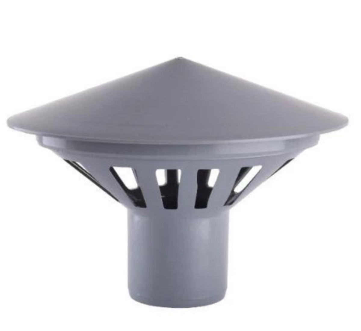 Вентиляционный грибок (дефлектор) 50 мм устанавливается на верхний конец канализационного стояка 50 мм. Обеспечивает защиту системы от попадания мусора, дождя и грызунов, при этом сохраняя отток канализационных газов (вентиляцию).