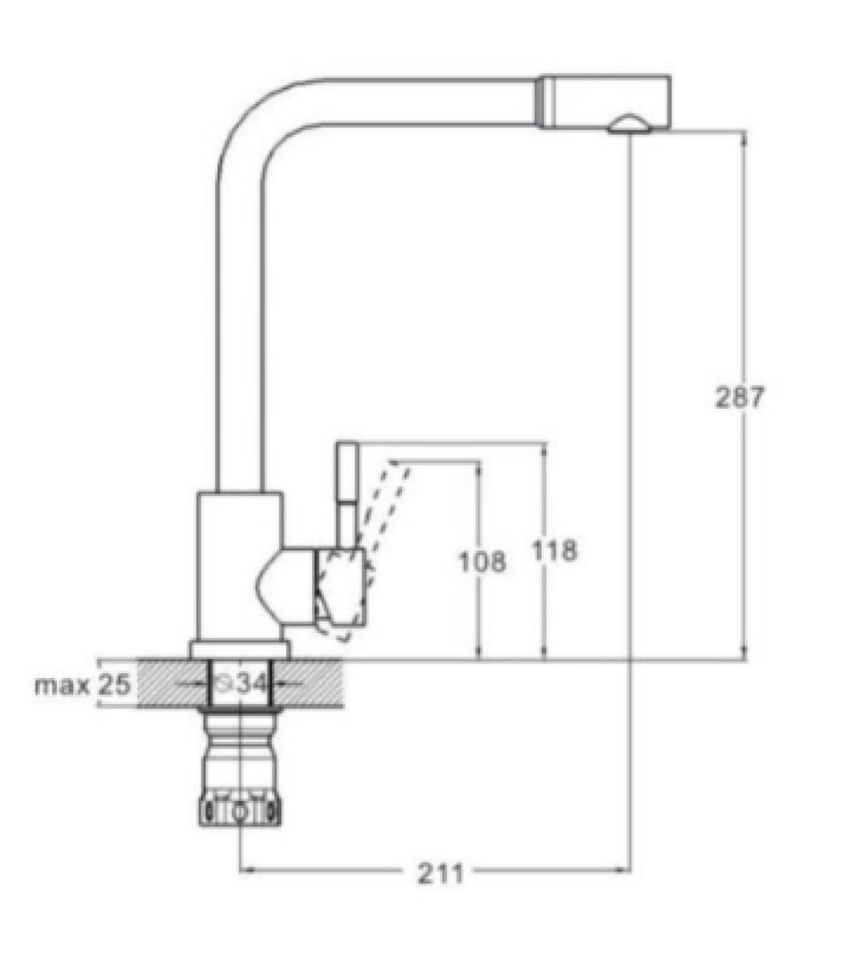 - Излив: Высокий, поворотный (кухонный стандарт).